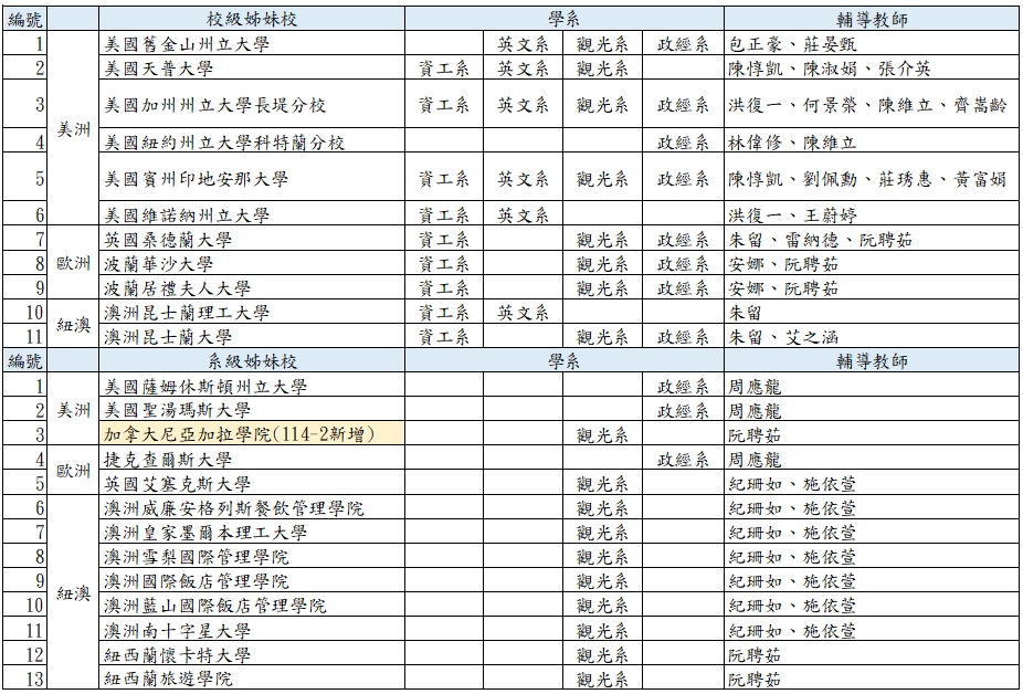 ◎以上為三全教育所屬學系自費出國姊妹校資訊